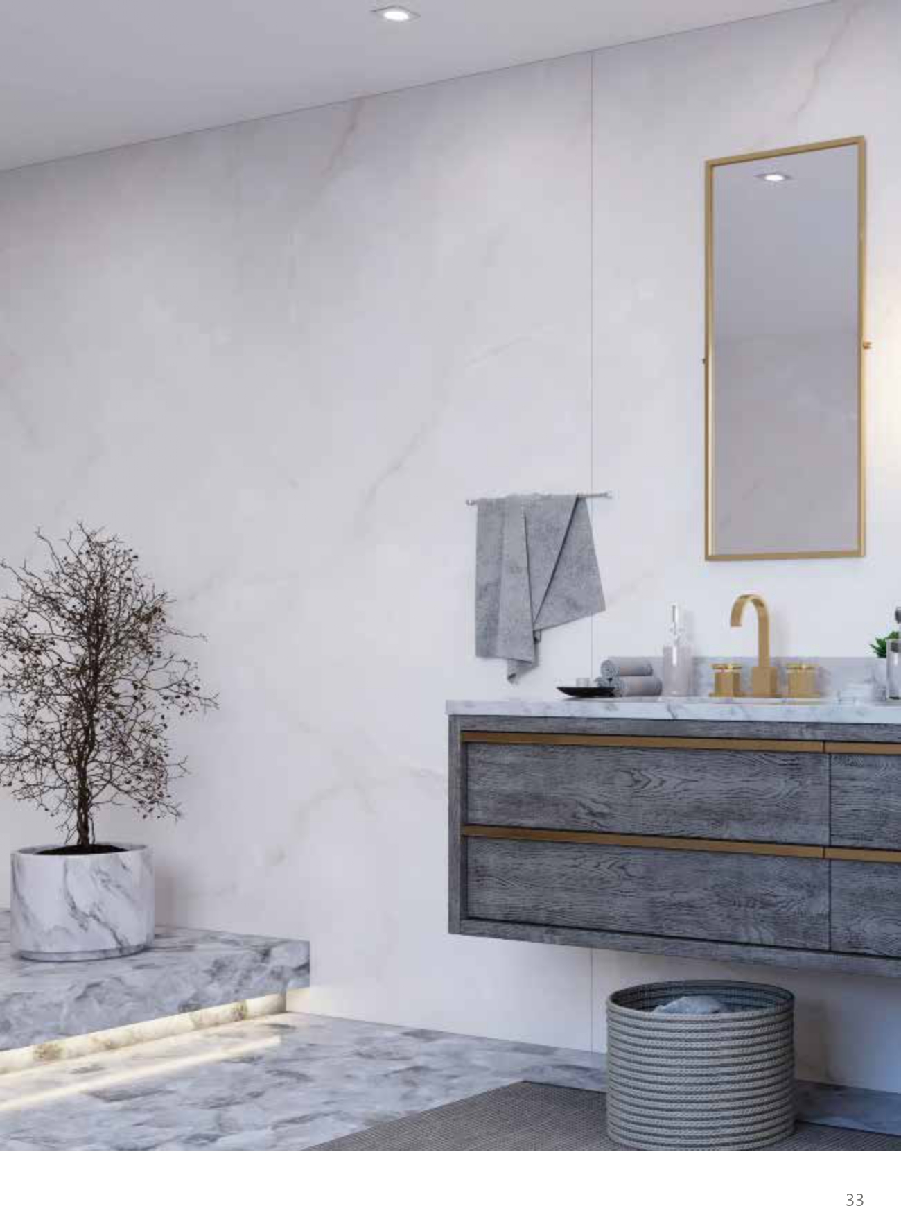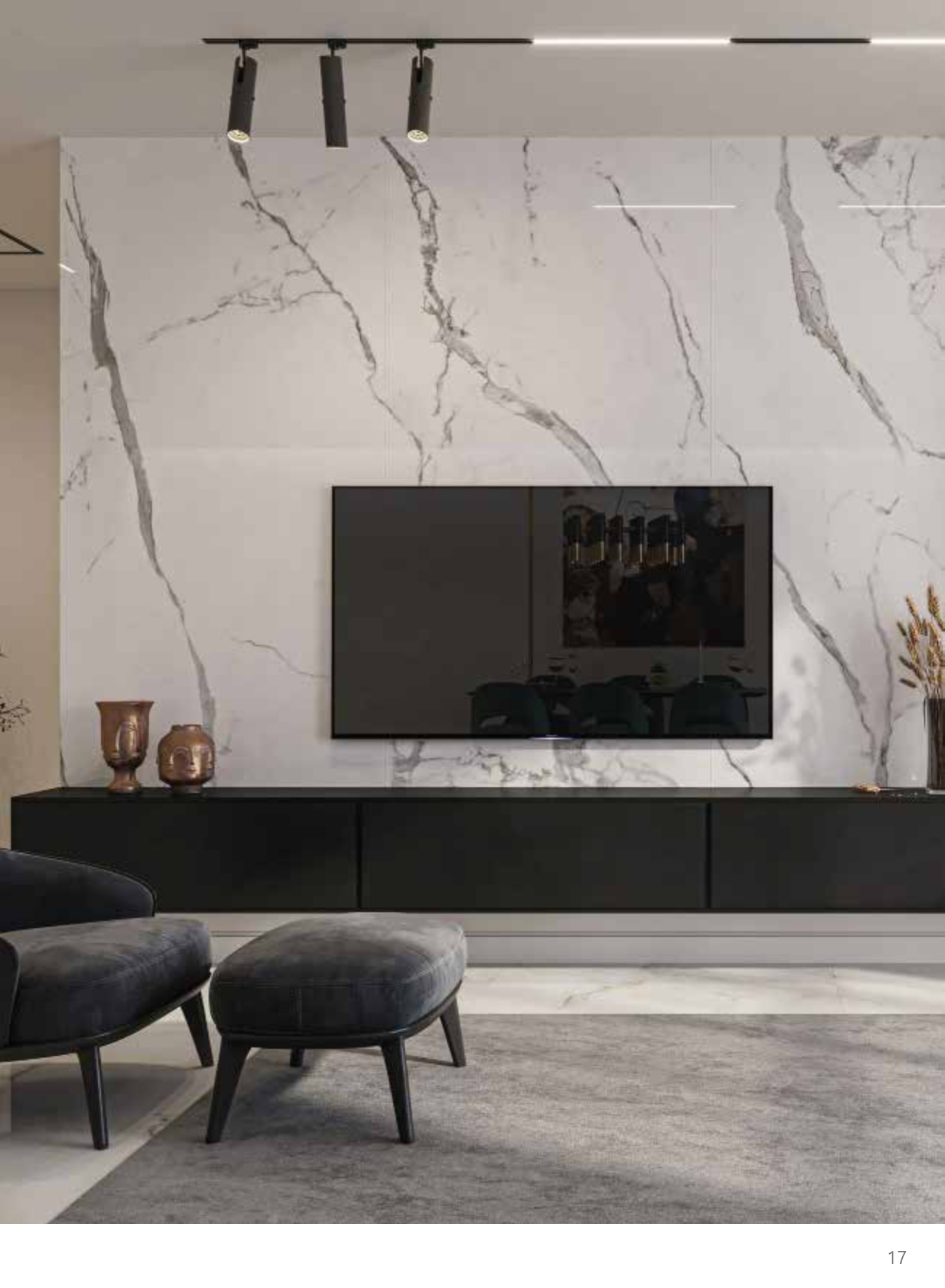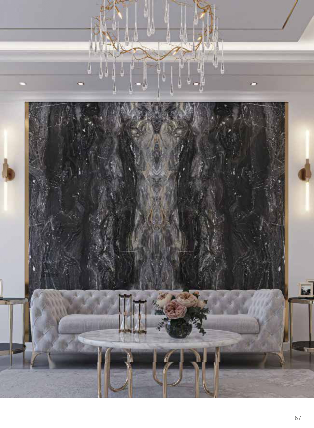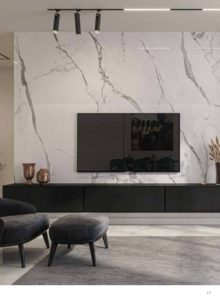 Natural marble with different stains and patterns has an attractive look. Thanks to digital printing technology, marble look slabs are so similar to natural stone. It can be used not only for tables and countertops but also for floor and wall coverings and even decorative elements such as flowerpots Applying the marble effect takes away the dullness of space and gives it a special radiance.