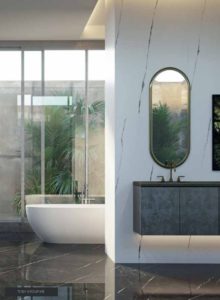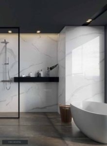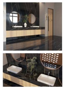Natural marble with different stains and patterns has an attractive look. Thanks to digital printing technology, marble look slabs are so similar to natural stone. It can be used not only for tables and countertops but also for floor and wall coverings and even decorative elements such as flowerpots Applying the marble effect takes away the dullness of space and gives it a special radiance.